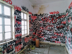 • but others were not as lucky; three of the buildings were demolished because there was a risk of collapse and the remaining six remained standing but forgotten, abandoned, walled and waiting for investors to bring upon better days, and there are still two others that are partially in ruins. In the children's sanatorium, for example, the structure of one of the external swings still survives and in the Pavilion of Surgery there is still a rusty medical stretcher.
